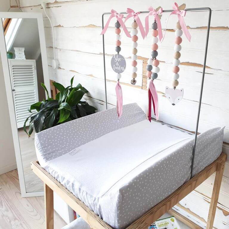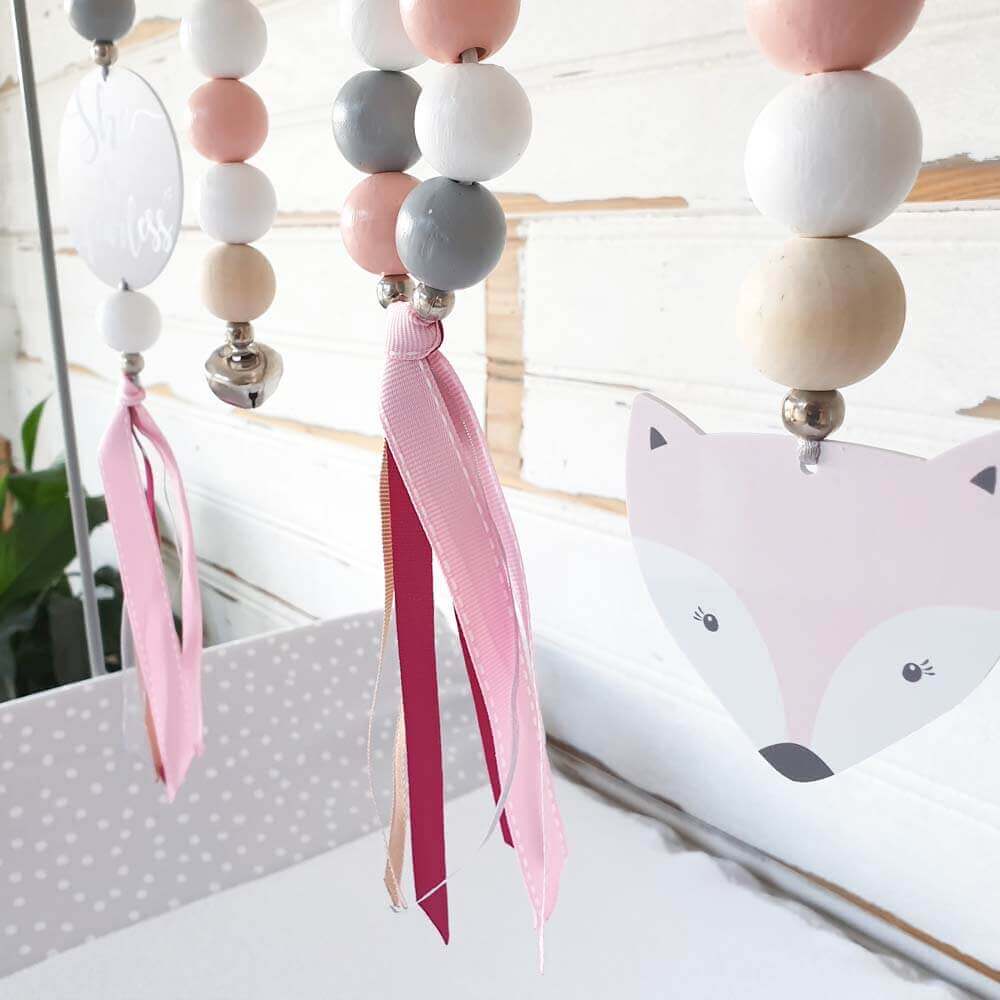 Tie your dingle dangles to sit at roughly 20cm from your little one - this is the average newborn depth of field and is the perfect height for babies to touch, kick and keep them entertained