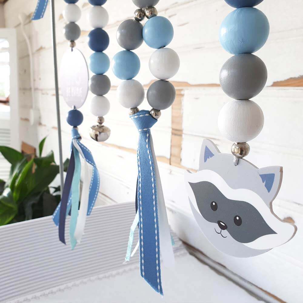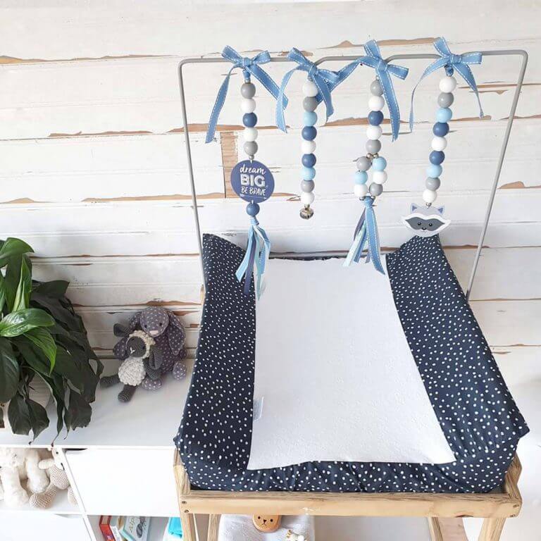 Tie your dingle dangles to sit at roughly 20cm from your little one - this is the average newborn depth of field and is the perfect height for babies to touch, kick and keep them entertained
