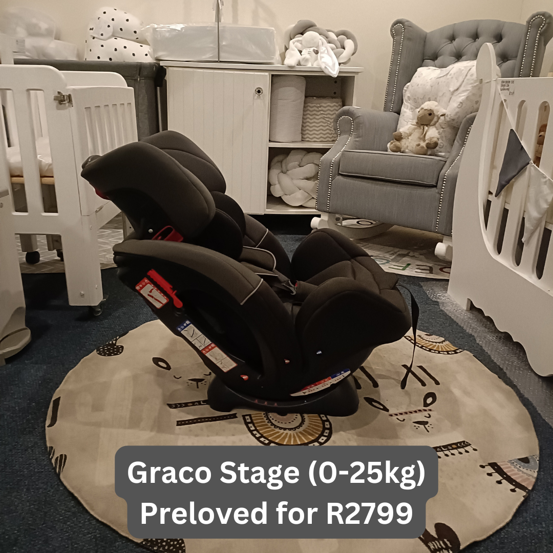 In conclusion, the Graco Stage (0-25kg) car seat is a reliable and versatile seating solution that offers safety, comfort, and convenience for both parents and children. Its ability to transition from rear-facing to forward-facing, along with its adjustable harness and headrest, ensures that it will be a long-lasting option for growing families. The pre-loved Graco Stage car seat, available at R2799, combines affordability with high-quality design, making it a smart choice for parents who want the best for their child without breaking the bank.